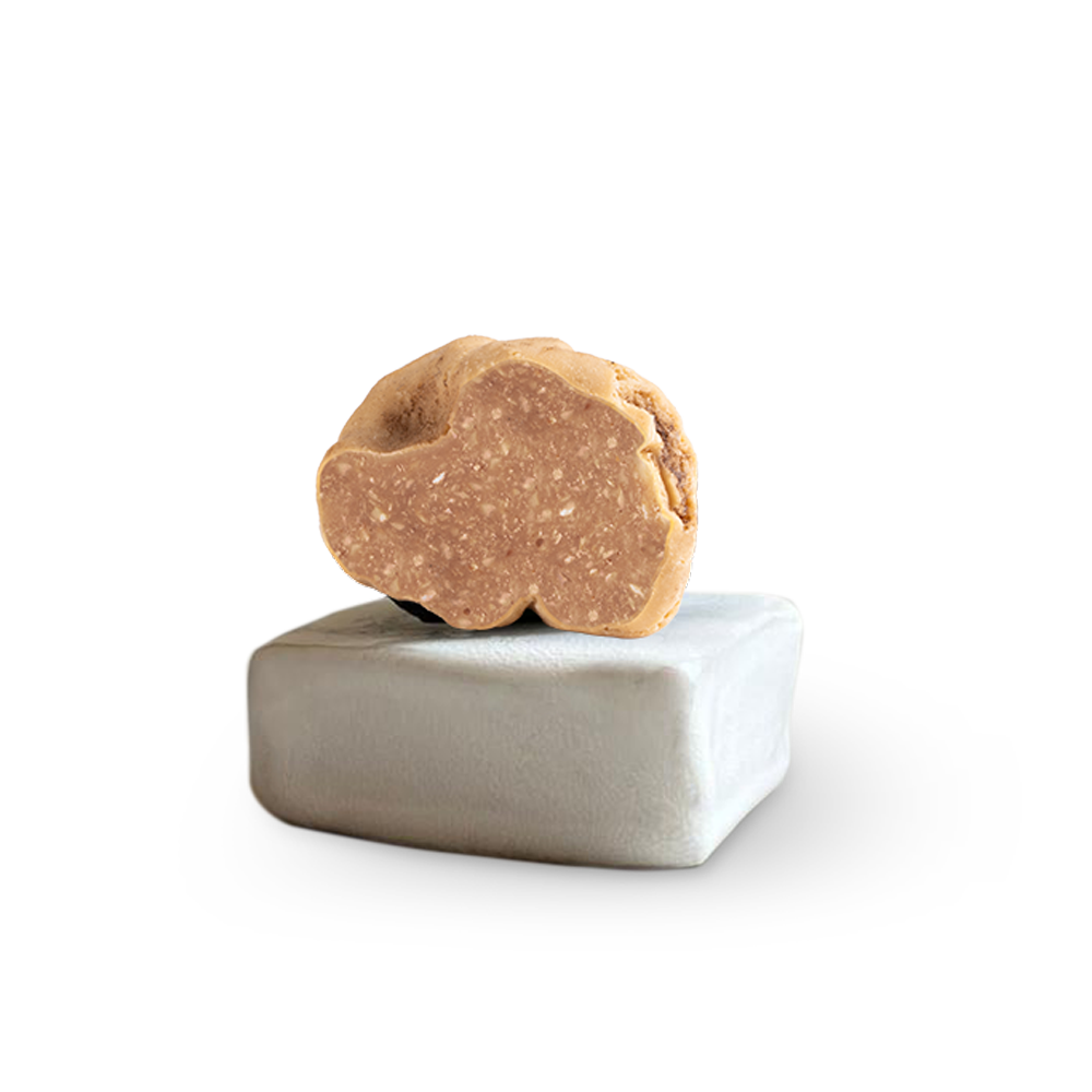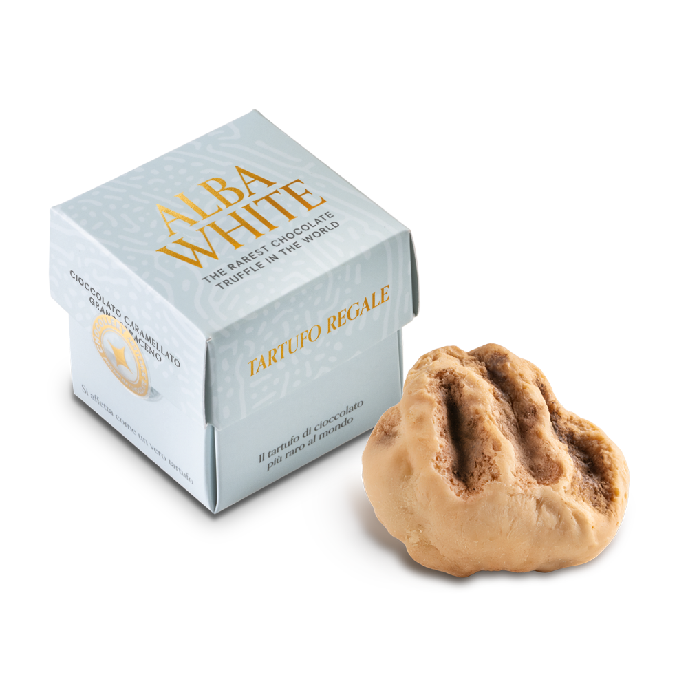 Ispirato dalla selezione di un autentico Tartufo Bianco d’Alba graffiato dalla zampata di un cane da tartufo, è stato riprodotto fedelmente in ogni dettaglio.