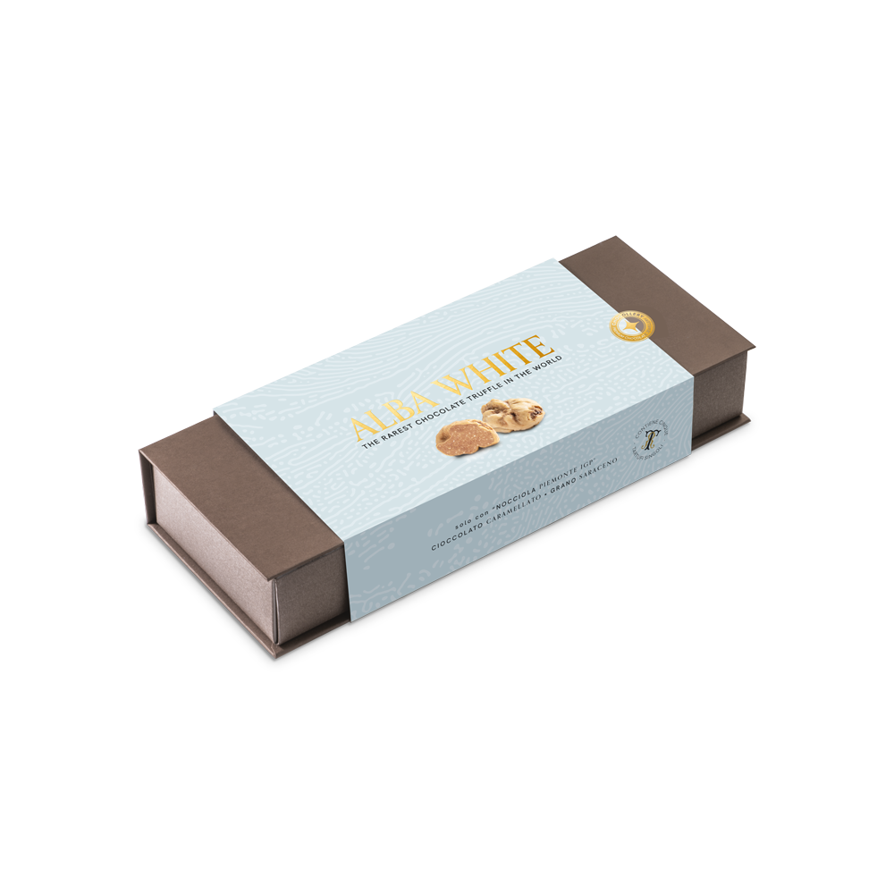 Al suo interno, la selezione di 5 tartufi di forma diversa con lo stesso gusto prelibato di cacao, più raro al mondo, e nocciola IGP Piemonte, a testimonianza dell’altissima artigianalità di Tartufo Regale.